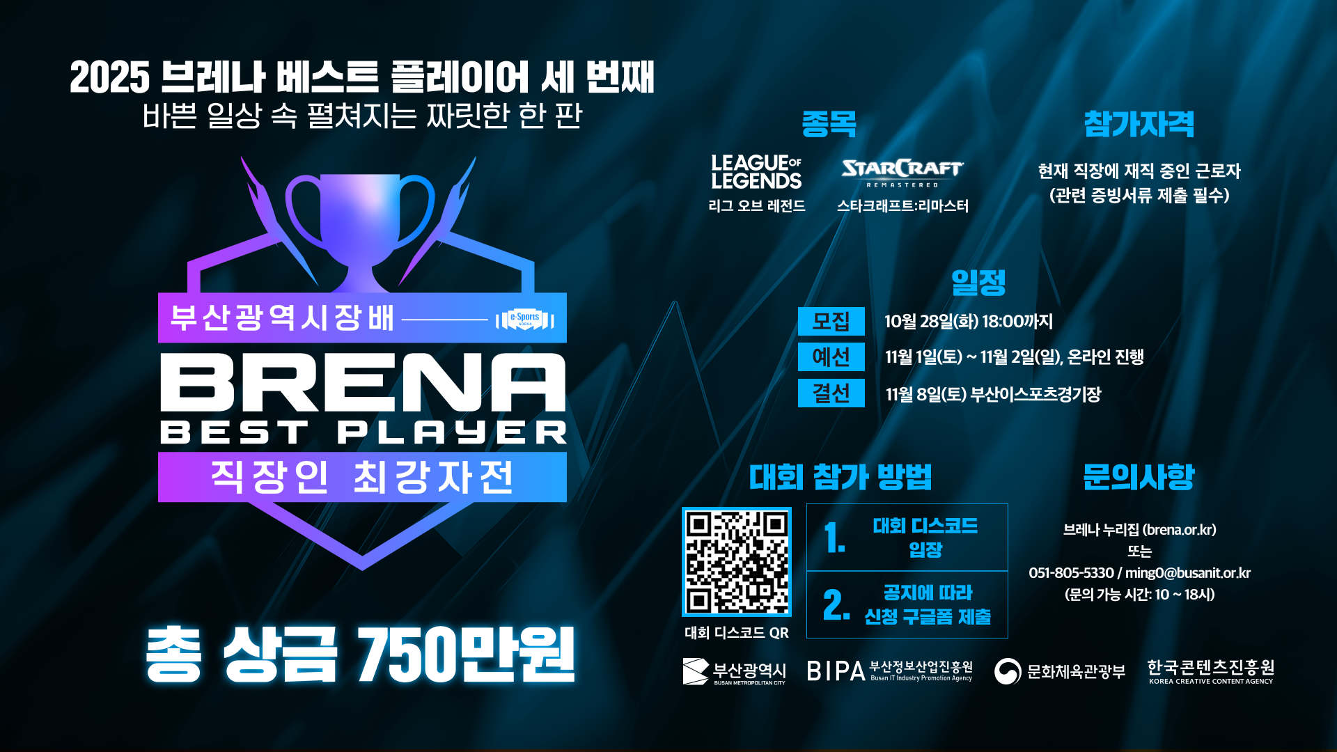 [부산=뉴시스] 2025 브레나 베스트 플레이어 직장인부 대회 (그림=부산정보산업진흥원 제공) 2025.10.13.