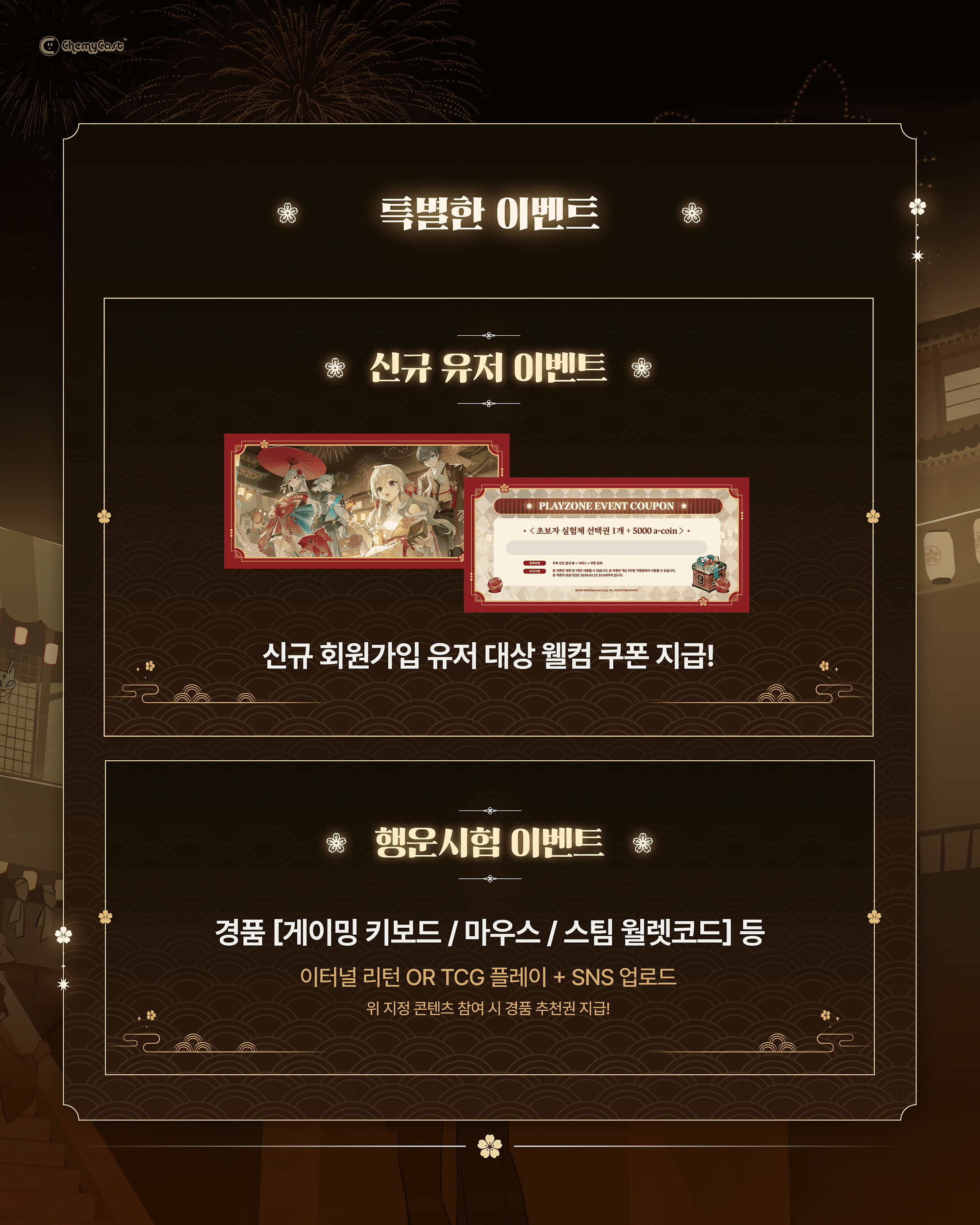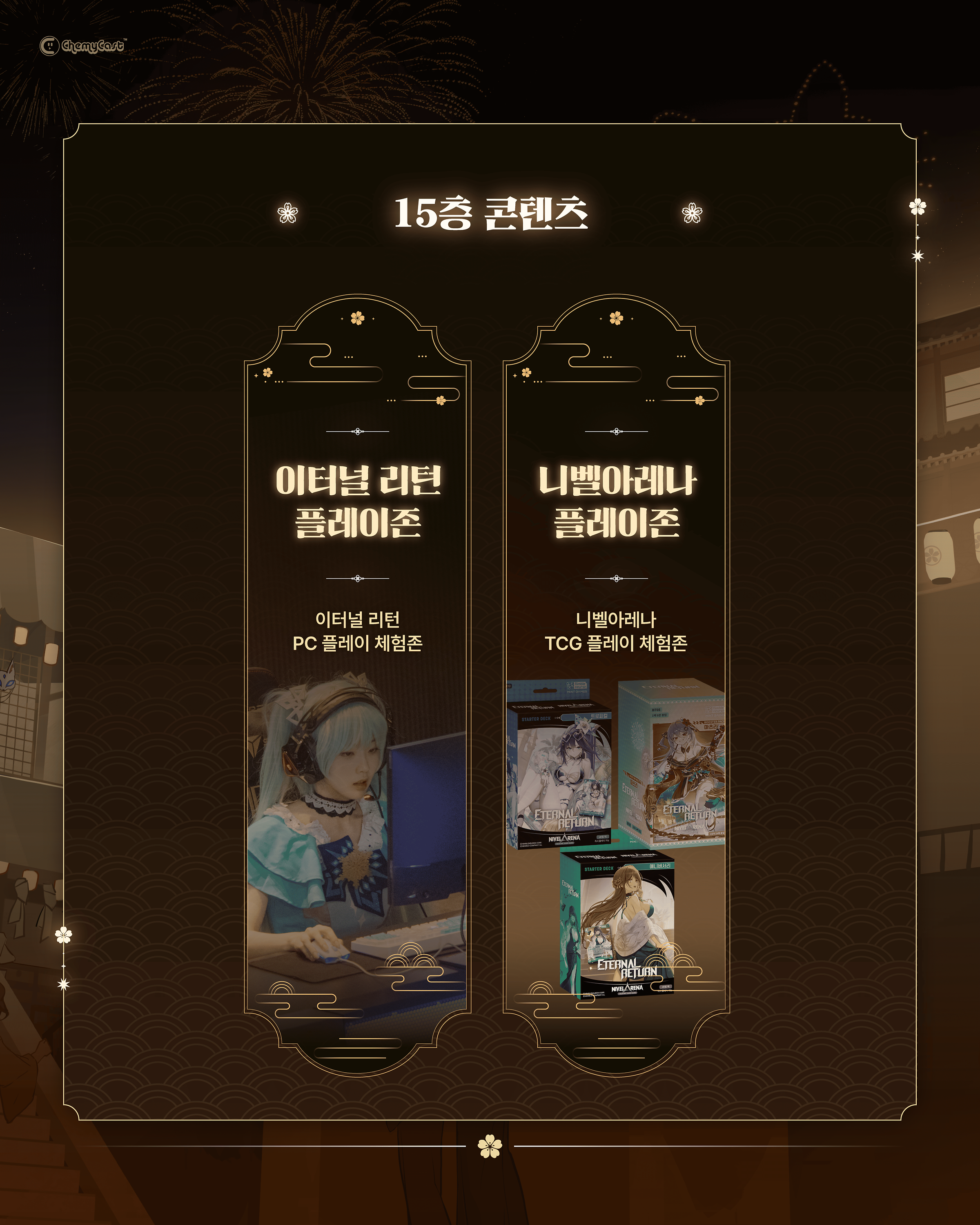 : 이터널 리턴 혹은 니벨아레나를 플레이 후 SNS에 인증샷을 업로드 시 TCG 플레이존에서 경품 뽑기 참여 가능