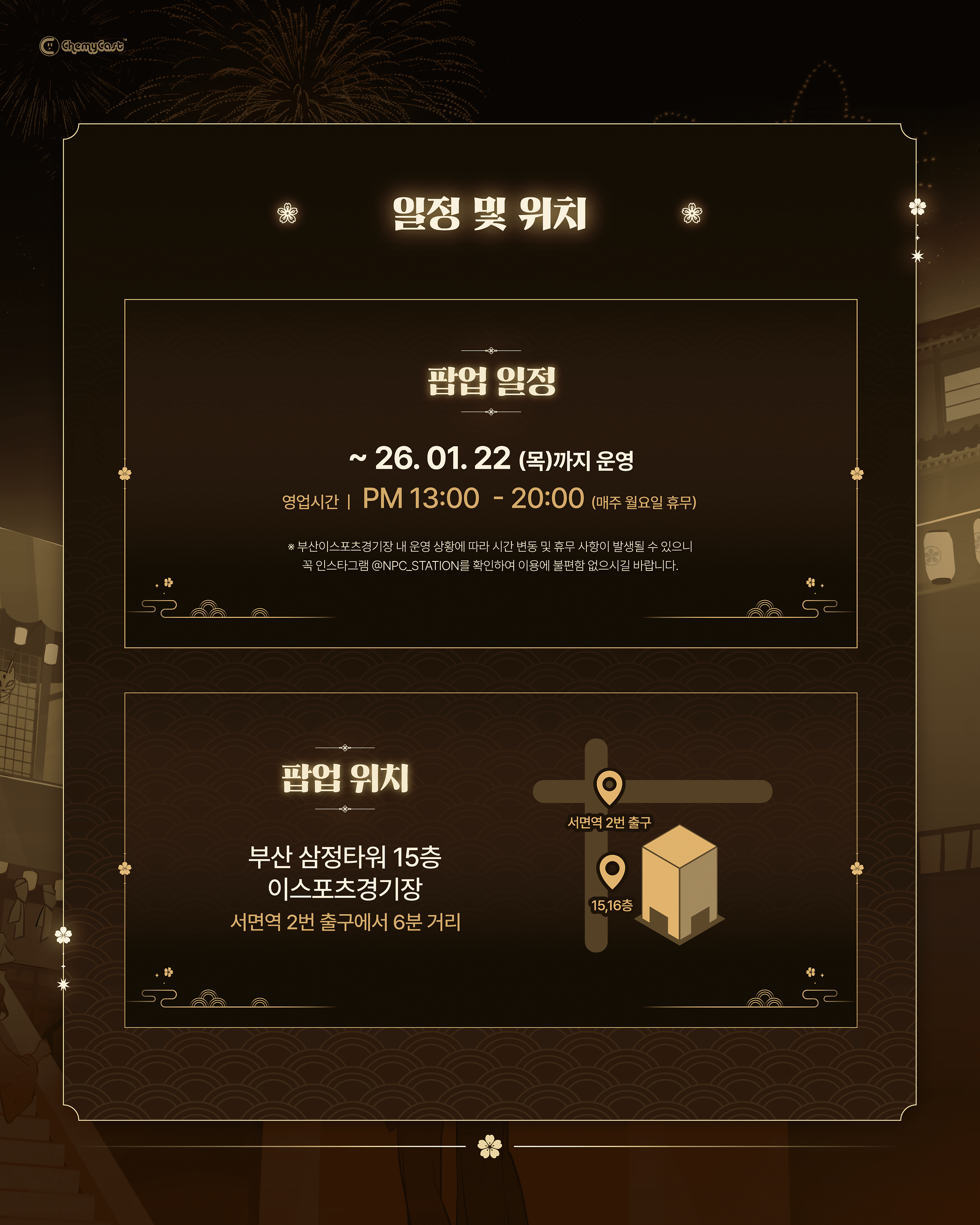 ※ 시설 사정 상 운영 시간과 상세 위치가 변경될 수 있습니다. 방문 전 반드시 @npc_station 계정을 통한 공지 확인 해주시길 바랍니다.