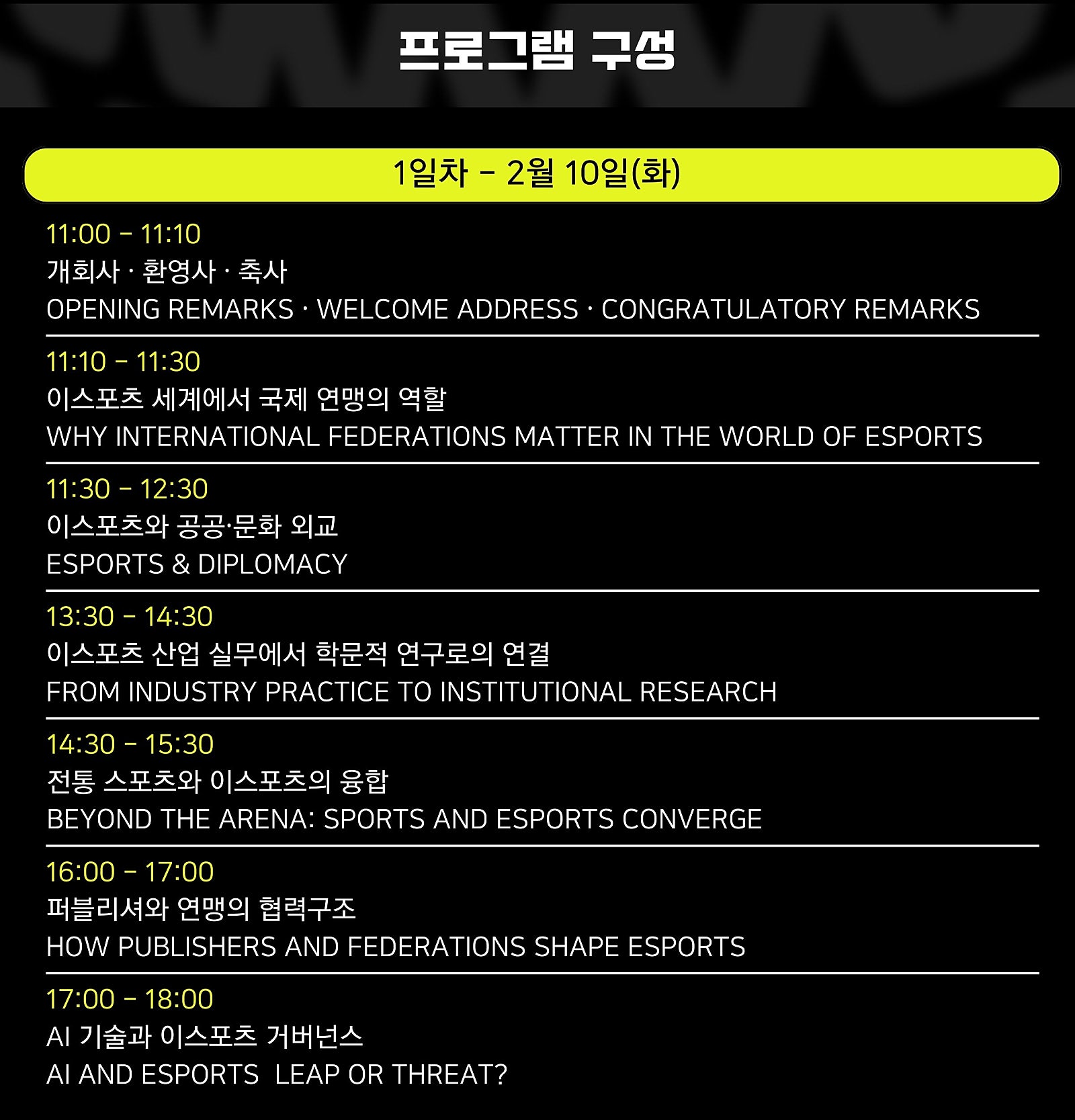 이스포츠 산업 전반에 대한 다양한 주제가 다뤄질 예정입니다.
